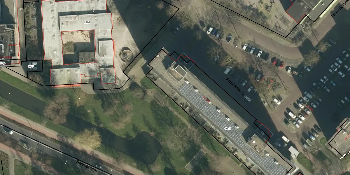 Het perceel waarop Pruylenborg 313 staat heeft een oppervlakte van 2133 m². Dit is een zeer groot perceel. De perceeloppervlakte wordt geregistreerd door het Kadaster. Gedetailleerde informatie over de maten van dit perceel kunt u vinden in het rapport Kadastrale kaart met maatvoering van Pruylenborg 313.