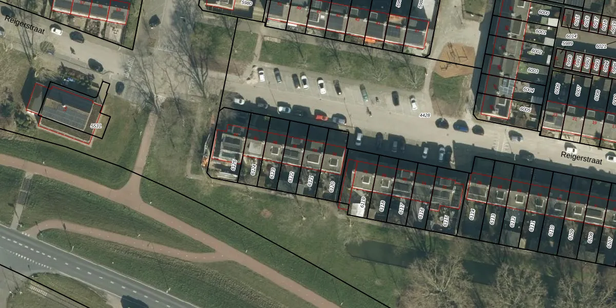 Gebruik de zoekbalk of klik op een perceel voor informatie over de adressen binnen dit perceel.