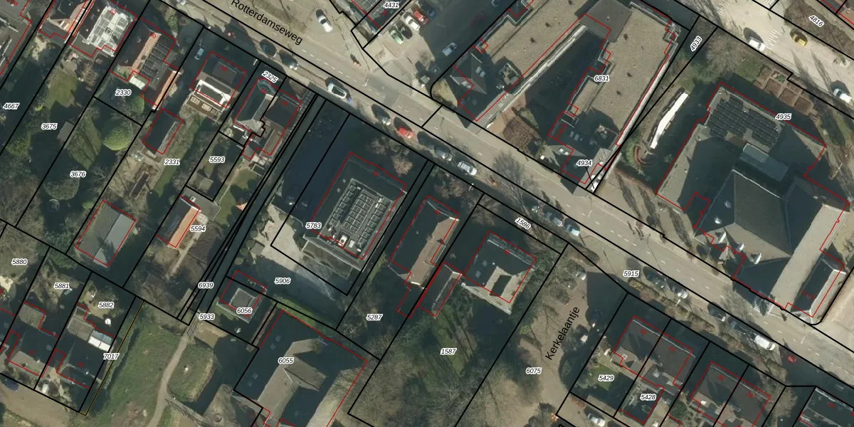 Het perceel waarop Rotterdamseweg 40 staat heeft een oppervlakte van 612 m². Dit is een groot perceel. De perceeloppervlakte wordt geregistreerd door het Kadaster. Gedetailleerde informatie over de maten van dit perceel kunt u vinden in het rapport Kadastrale kaart met maatvoering van Rotterdamseweg 40.