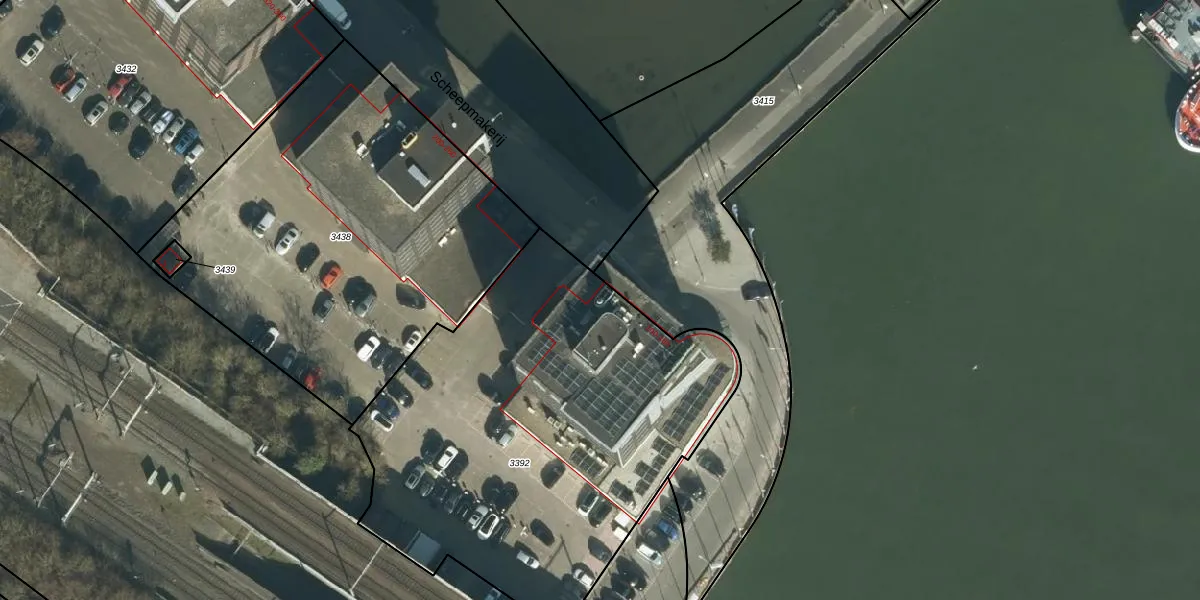 Het perceel waarop Scheepmakerij 100 staat heeft een oppervlakte van 2431 m². Dit is een zeer groot perceel. De perceeloppervlakte wordt geregistreerd door het Kadaster. Gedetailleerde informatie over de maten van dit perceel kunt u vinden in het rapport Kadastrale kaart met maatvoering van Scheepmakerij 100.