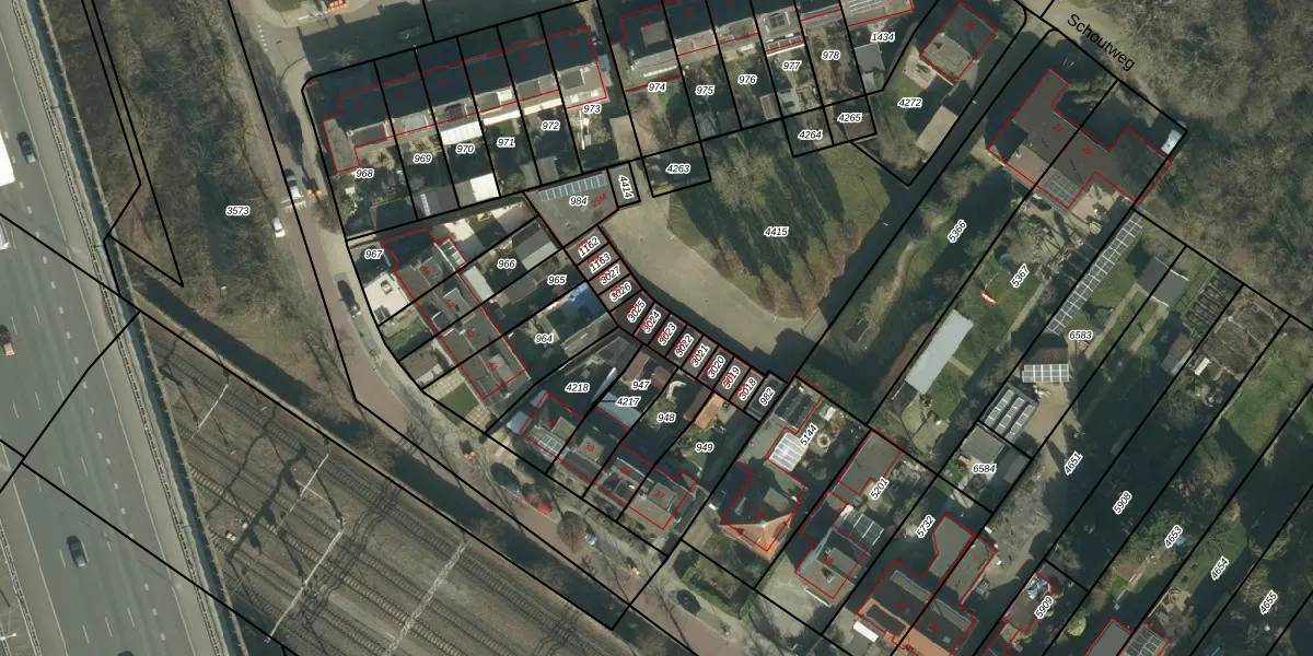 Het perceel waarop Schoutweg 25-G staat heeft een oppervlakte van 18 m². Dit is een klein perceel. De perceeloppervlakte wordt geregistreerd door het Kadaster. Gedetailleerde informatie over de maten van dit perceel kunt u vinden in het rapport Kadastrale kaart met maatvoering van Schoutweg 25-G.