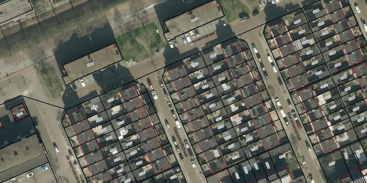 Gebruik de zoekbalk of klik op een perceel voor informatie over de adressen binnen dit perceel.