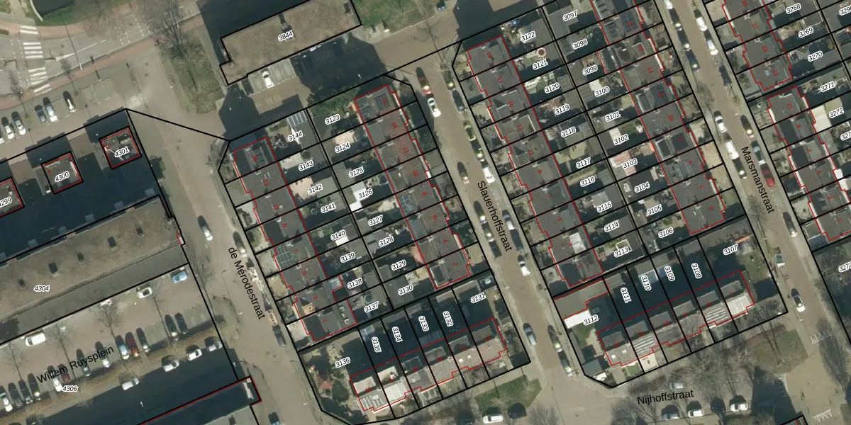 Gebruik de zoekbalk of klik op een perceel voor informatie over de adressen binnen dit perceel.