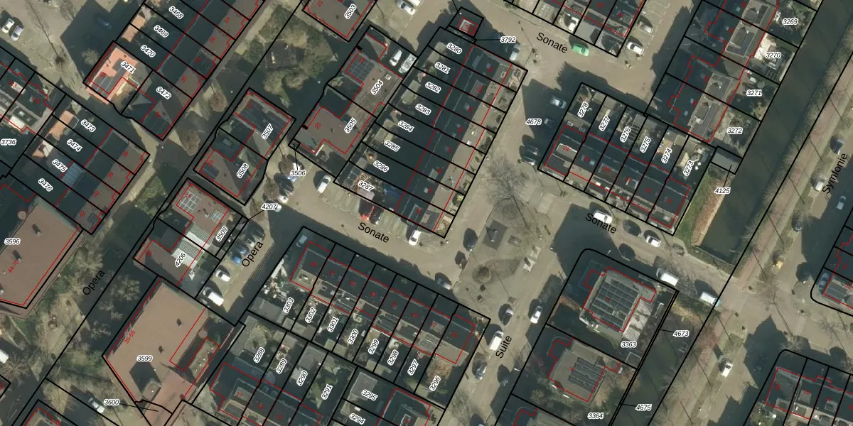 Het perceel waarop Sonate 41 staat heeft een oppervlakte van 162 m². Dit is een middelgroot perceel. De perceeloppervlakte wordt geregistreerd door het Kadaster. Gedetailleerde informatie over de maten van dit perceel kunt u vinden in het rapport Kadastrale kaart met maatvoering van Sonate 41.