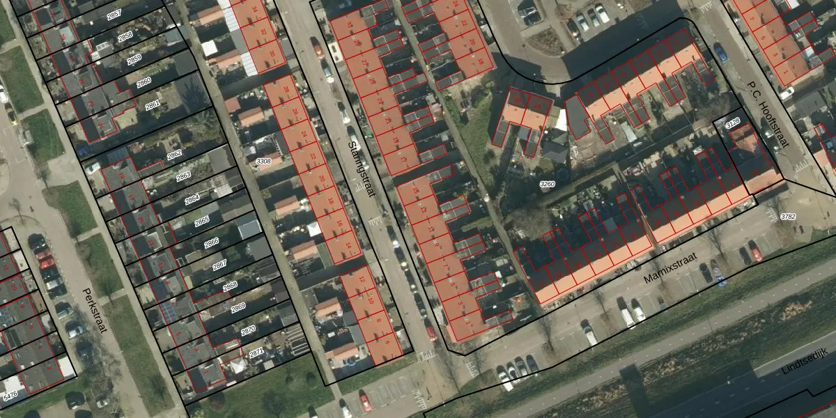 Het perceel waarop Staringstraat 13 staat heeft een oppervlakte van 6168 m². Dit is een zeer groot perceel. De perceeloppervlakte wordt geregistreerd door het Kadaster. Gedetailleerde informatie over de maten van dit perceel kunt u vinden in het rapport Kadastrale kaart met maatvoering van Staringstraat 13.