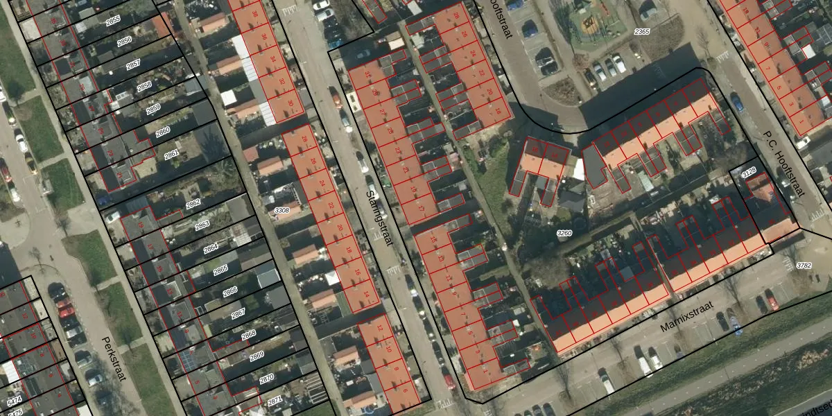 Het perceel waarop Staringstraat 17 staat heeft een oppervlakte van 6168 m². Dit is een zeer groot perceel. De perceeloppervlakte wordt geregistreerd door het Kadaster. Gedetailleerde informatie over de maten van dit perceel kunt u vinden in het rapport Kadastrale kaart met maatvoering van Staringstraat 17.