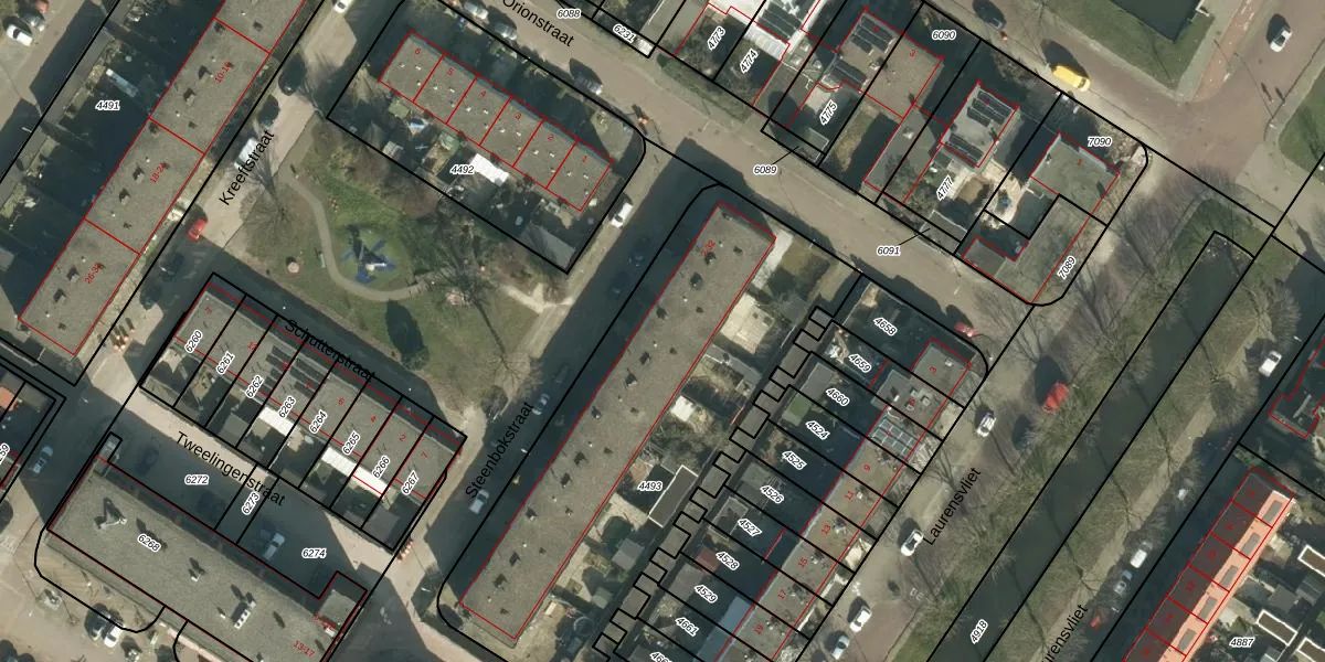 Het perceel waarop Steenbokstraat 10 staat heeft een oppervlakte van 2060 m². Dit is een zeer groot perceel. De perceeloppervlakte wordt geregistreerd door het Kadaster. Gedetailleerde informatie over de maten van dit perceel kunt u vinden in het rapport Kadastrale kaart met maatvoering van Steenbokstraat 10.