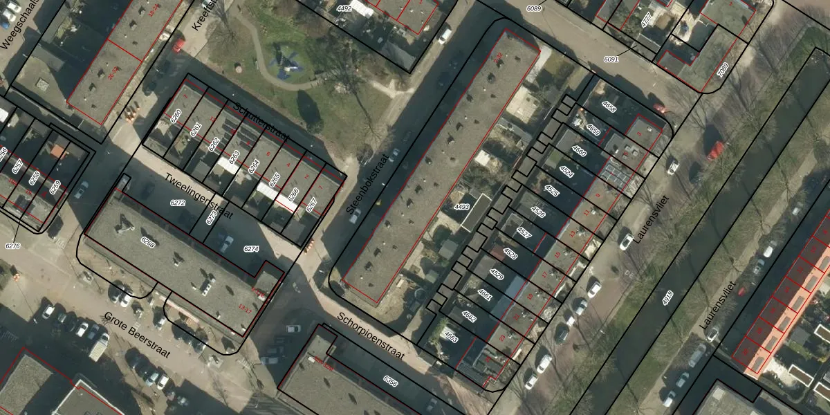 Het perceel waarop Steenbokstraat 24 staat heeft een oppervlakte van 2060 m². Dit is een zeer groot perceel. De perceeloppervlakte wordt geregistreerd door het Kadaster. Gedetailleerde informatie over de maten van dit perceel kunt u vinden in het rapport Kadastrale kaart met maatvoering van Steenbokstraat 24.