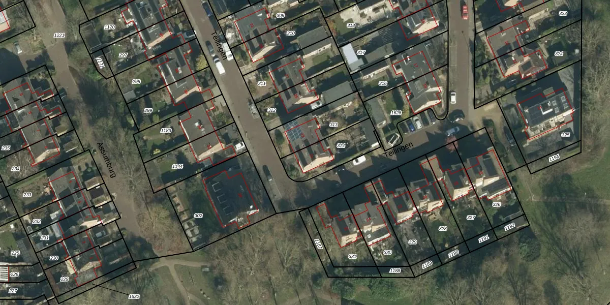 Het perceel waarop Teilingen 21 staat heeft een oppervlakte van 307 m². Dit is een groot perceel. De perceeloppervlakte wordt geregistreerd door het Kadaster. Gedetailleerde informatie over de maten van dit perceel kunt u vinden in het rapport Kadastrale kaart met maatvoering van Teilingen 21.