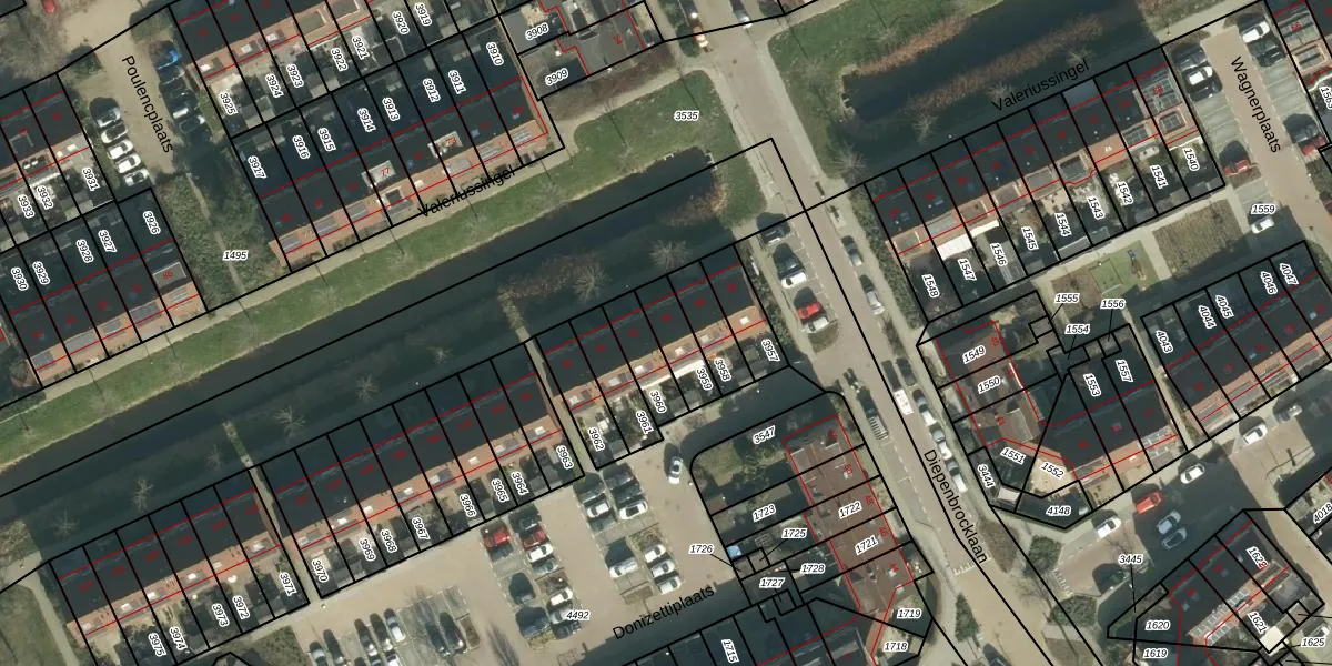 Het perceel waarop Valeriussingel 90 staat heeft een oppervlakte van 108 m². Dit is een middelgroot perceel. De perceeloppervlakte wordt geregistreerd door het Kadaster. Gedetailleerde informatie over de maten van dit perceel kunt u vinden in het rapport Kadastrale kaart met maatvoering van Valeriussingel 90.