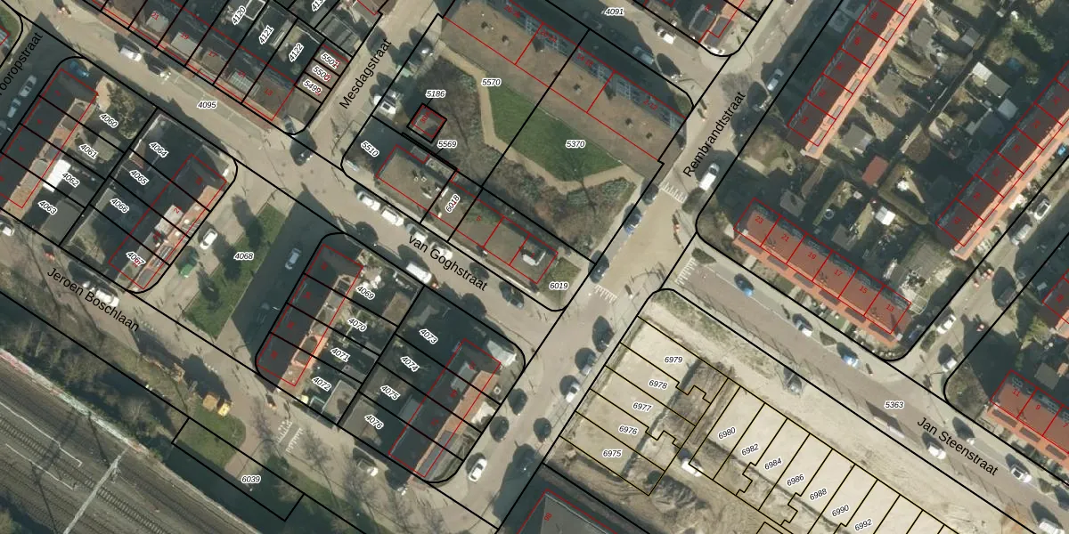 van Goghstraat 1 is gelegen op kadastraal perceel ZDT01B6019. Deze kadastrale aanduiding is uniek en wordt gebruikt door het Kadaster om eigendomsrechten en andere zakelijke rechten vast te leggen. Het perceel maakt onderdeel uit van de kadastrale gemeente Zwijndrecht.
