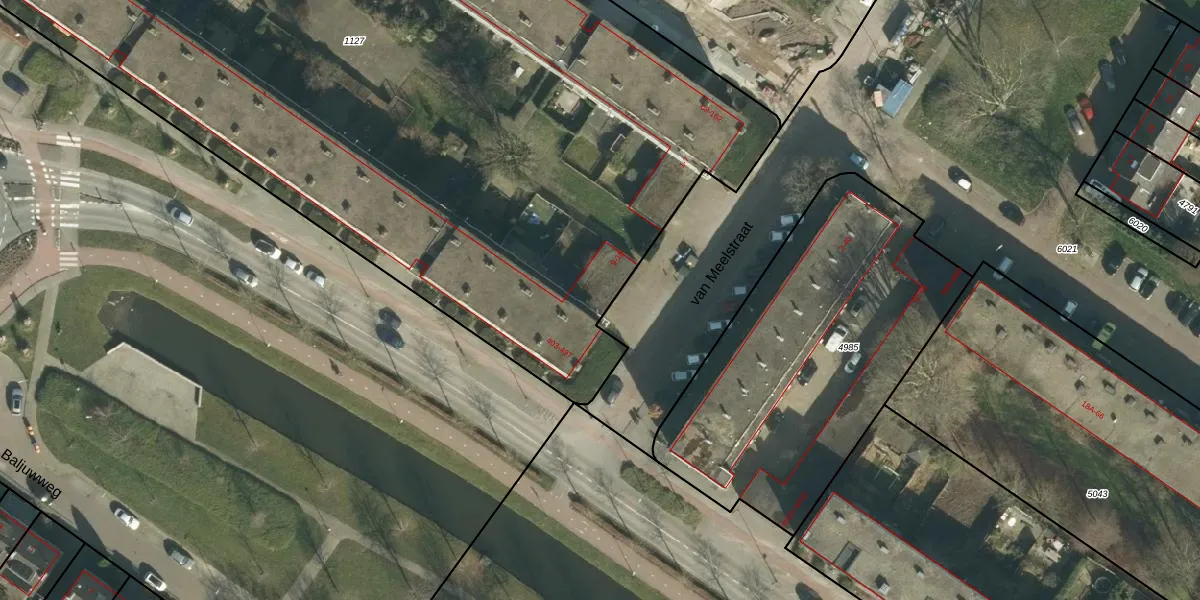 Het perceel waarop van Meelstraat 13 staat heeft een oppervlakte van 7350 m². Dit is een zeer groot perceel. De perceeloppervlakte wordt geregistreerd door het Kadaster. Gedetailleerde informatie over de maten van dit perceel kunt u vinden in het rapport Kadastrale kaart met maatvoering van van Meelstraat 13.