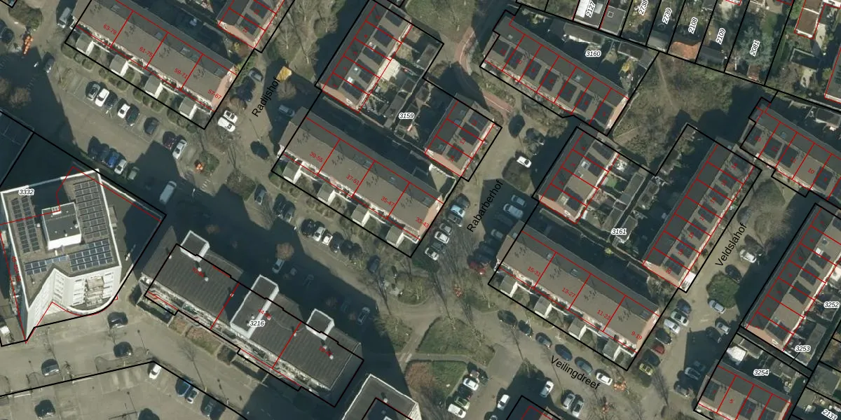 Het perceel waarop Veilingdreef 43 staat heeft een oppervlakte van 1725 m². Dit is een zeer groot perceel. De perceeloppervlakte wordt geregistreerd door het Kadaster. Gedetailleerde informatie over de maten van dit perceel kunt u vinden in het rapport Kadastrale kaart met maatvoering van Veilingdreef 43.