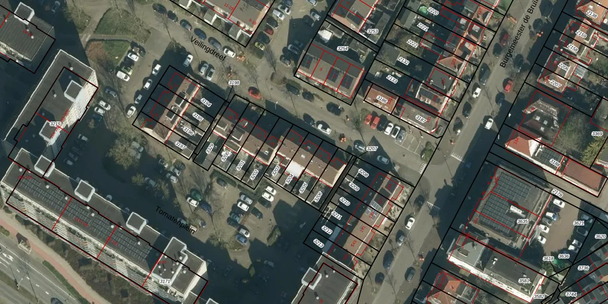 Het perceel waarop Veilingdreef 6 staat heeft een oppervlakte van 109 m². Dit is een middelgroot perceel. De perceeloppervlakte wordt geregistreerd door het Kadaster. Gedetailleerde informatie over de maten van dit perceel kunt u vinden in het rapport Kadastrale kaart met maatvoering van Veilingdreef 6.