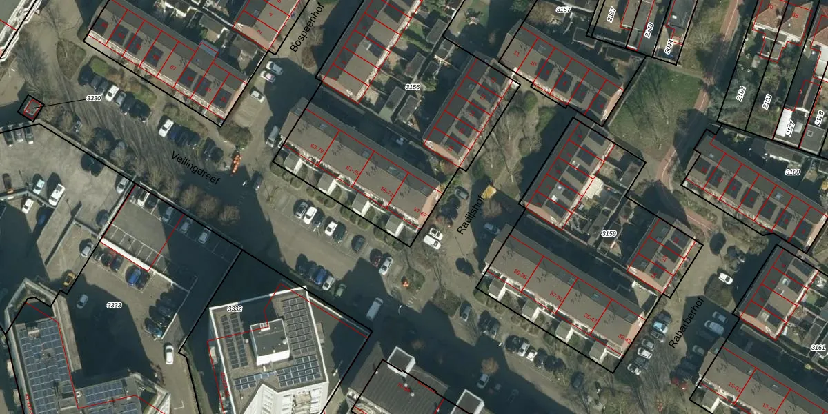 Veilingdreef 65 is gelegen op kadastraal perceel ZDT01C3156. Deze kadastrale aanduiding is uniek en wordt gebruikt door het Kadaster om eigendomsrechten en andere zakelijke rechten vast te leggen. Het perceel maakt onderdeel uit van de kadastrale gemeente Zwijndrecht.