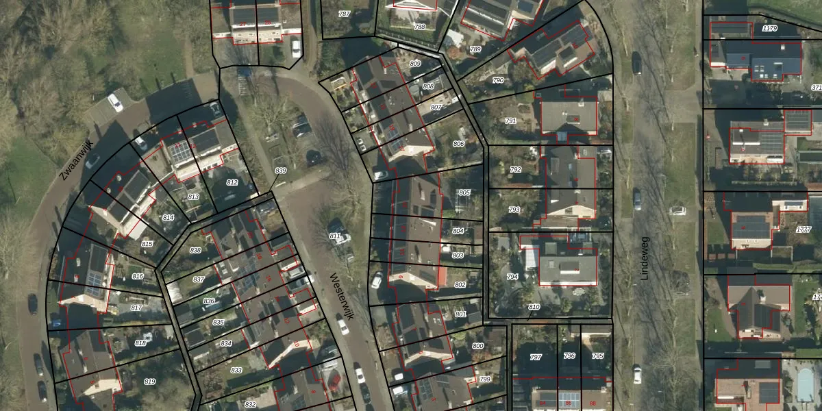 Gebruik de zoekbalk of klik op een perceel voor informatie over de adressen binnen dit perceel.