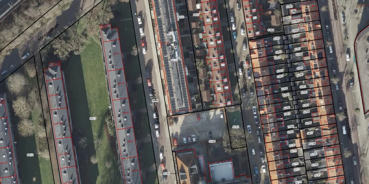 Het perceel waarop Albert Cuypstraat 88 staat heeft een oppervlakte van 1734 m². Dit is een zeer groot perceel. De perceeloppervlakte wordt geregistreerd door het Kadaster. Gedetailleerde informatie over de maten van dit perceel kunt u vinden in het rapport Kadastrale kaart met maatvoering van Albert Cuypstraat 88.