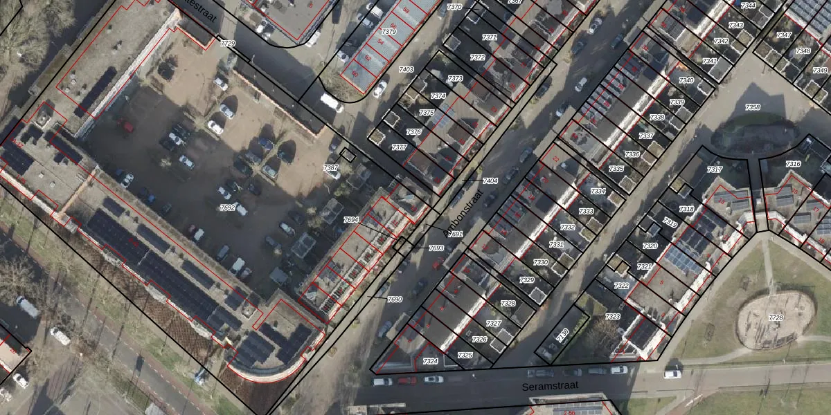 Het perceel waarop Ambonstraat 13 staat heeft een oppervlakte van 5651 m². Dit is een zeer groot perceel. De perceeloppervlakte wordt geregistreerd door het Kadaster. Gedetailleerde informatie over de maten van dit perceel kunt u vinden in het rapport Kadastrale kaart met maatvoering van Ambonstraat 13.