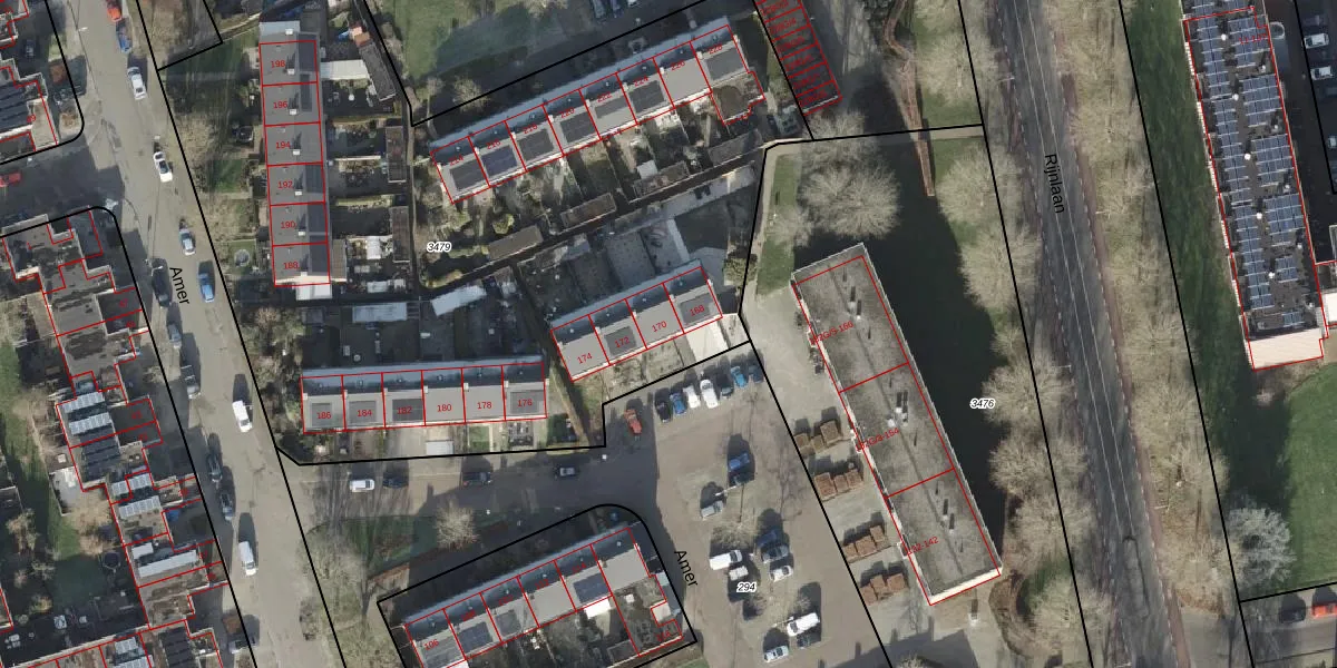 Het perceel waarop Amer 170 staat heeft een oppervlakte van 5960 m². Dit is een zeer groot perceel. De perceeloppervlakte wordt geregistreerd door het Kadaster. Gedetailleerde informatie over de maten van dit perceel kunt u vinden in het rapport Kadastrale kaart met maatvoering van Amer 170.