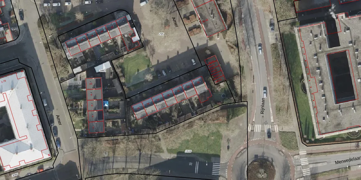 Het perceel waarop Amer 32 staat heeft een oppervlakte van 3485 m². Dit is een zeer groot perceel. De perceeloppervlakte wordt geregistreerd door het Kadaster. Gedetailleerde informatie over de maten van dit perceel kunt u vinden in het rapport Kadastrale kaart met maatvoering van Amer 32.