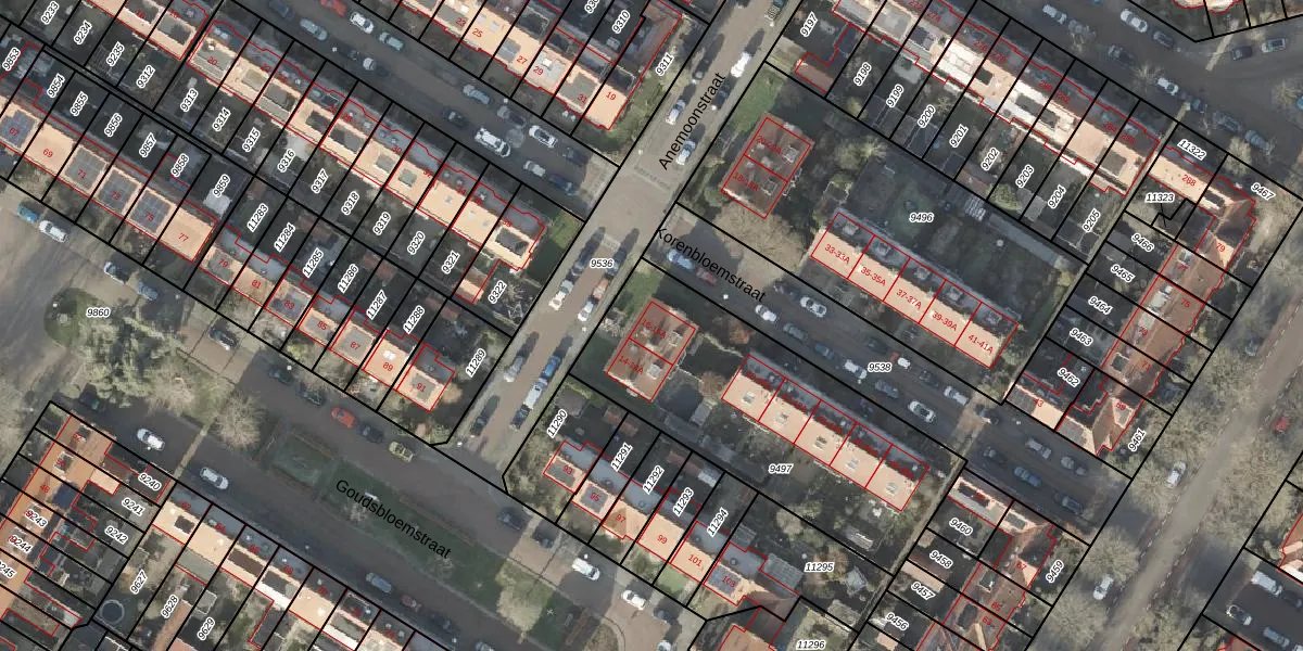 Het perceel waarop Anemoonstraat 16 staat heeft een oppervlakte van 1241 m². Dit is een zeer groot perceel. De perceeloppervlakte wordt geregistreerd door het Kadaster. Gedetailleerde informatie over de maten van dit perceel kunt u vinden in het rapport Kadastrale kaart met maatvoering van Anemoonstraat 16.