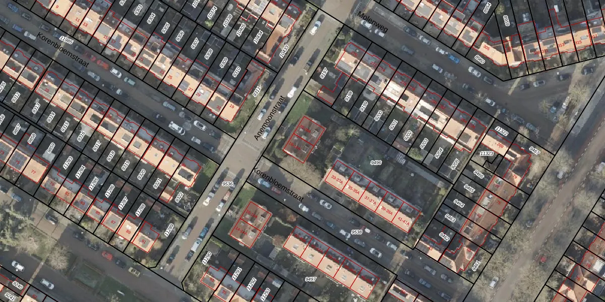 Het perceel waarop Anemoonstraat 18-A staat heeft een oppervlakte van 1503 m². Dit is een zeer groot perceel. De perceeloppervlakte wordt geregistreerd door het Kadaster. Gedetailleerde informatie over de maten van dit perceel kunt u vinden in het rapport Kadastrale kaart met maatvoering van Anemoonstraat 18-A.