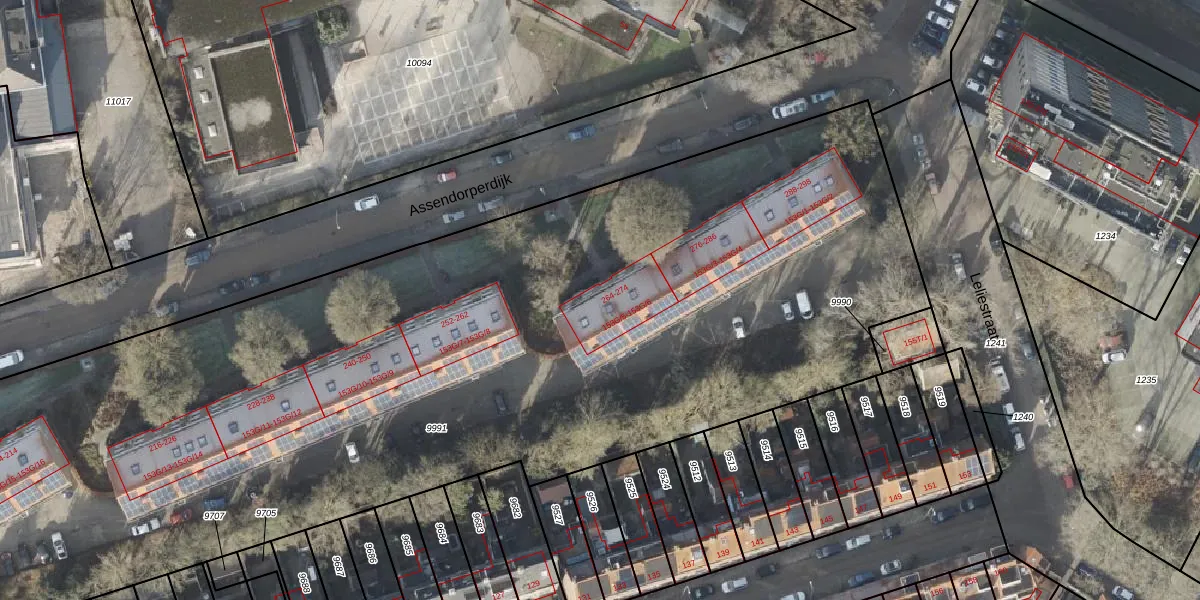 Het perceel waarop Assendorperdijk 268 staat heeft een oppervlakte van 8727 m². Dit is een zeer groot perceel. De perceeloppervlakte wordt geregistreerd door het Kadaster. Gedetailleerde informatie over de maten van dit perceel kunt u vinden in het rapport Kadastrale kaart met maatvoering van Assendorperdijk 268.