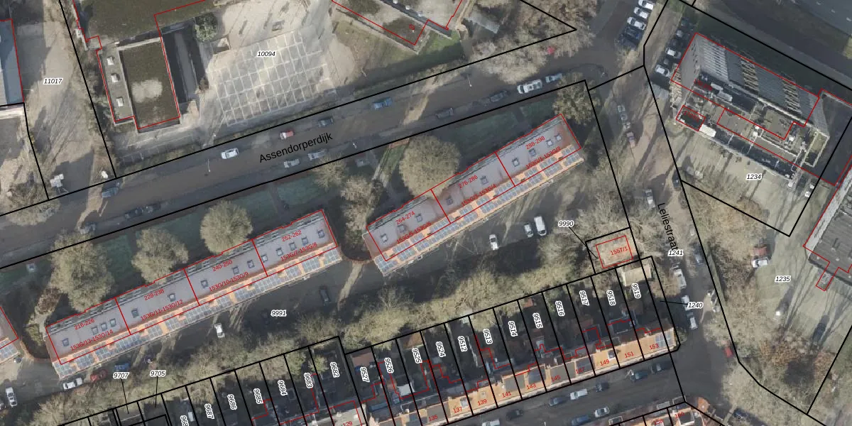 Het perceel waarop Assendorperdijk 272 staat heeft een oppervlakte van 8727 m². Dit is een zeer groot perceel. De perceeloppervlakte wordt geregistreerd door het Kadaster. Gedetailleerde informatie over de maten van dit perceel kunt u vinden in het rapport Kadastrale kaart met maatvoering van Assendorperdijk 272.