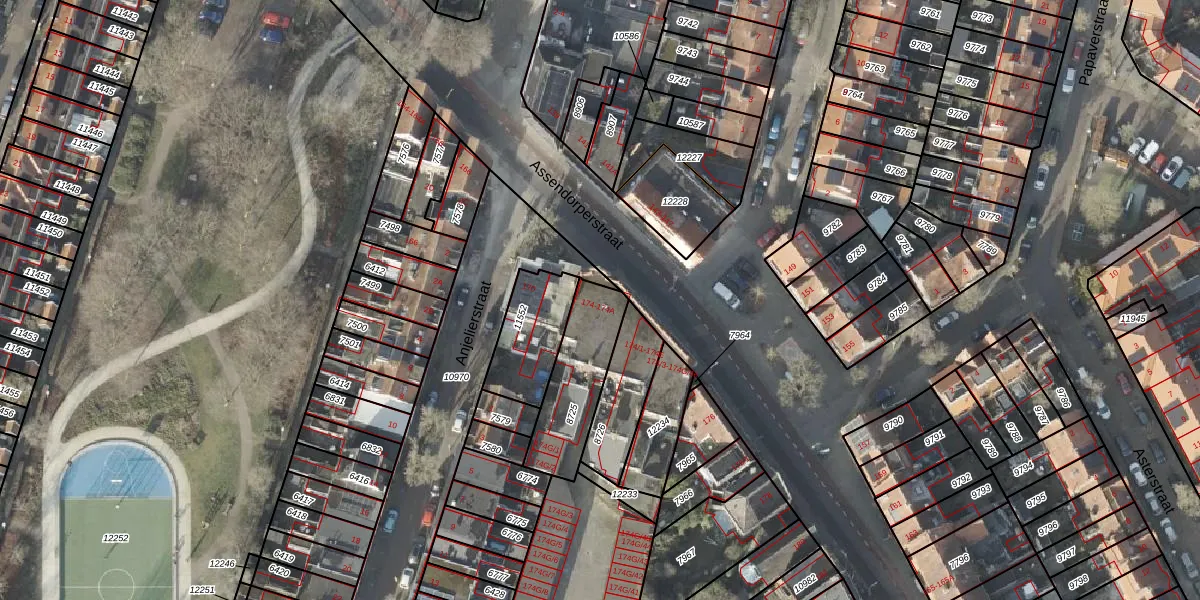 Assendorperstraat 174 is gelegen op kadastraal perceel ZLE00G8725. Deze kadastrale aanduiding is uniek en wordt gebruikt door het Kadaster om eigendomsrechten en andere zakelijke rechten vast te leggen. Het perceel maakt onderdeel uit van de kadastrale gemeente Zwolle.