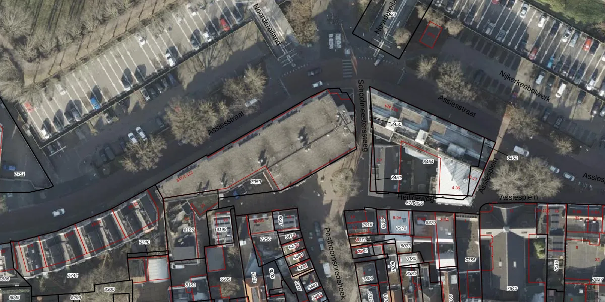 Assiesstraat 106 is gelegen op kadastraal perceel ZLE00F7959. Deze kadastrale aanduiding is uniek en wordt gebruikt door het Kadaster om eigendomsrechten en andere zakelijke rechten vast te leggen. Het perceel maakt onderdeel uit van de kadastrale gemeente Zwolle.