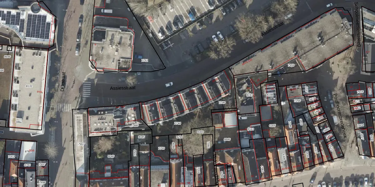 Het perceel waarop Assiesstraat 18 staat heeft een oppervlakte van 1057 m². Dit is een zeer groot perceel. De perceeloppervlakte wordt geregistreerd door het Kadaster. Gedetailleerde informatie over de maten van dit perceel kunt u vinden in het rapport Kadastrale kaart met maatvoering van Assiesstraat 18.