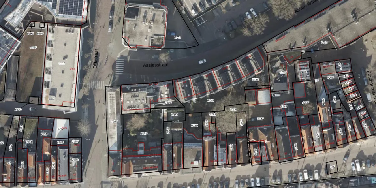 Het perceel waarop Assiesstraat 8 staat heeft een oppervlakte van 1057 m². Dit is een zeer groot perceel. De perceeloppervlakte wordt geregistreerd door het Kadaster. Gedetailleerde informatie over de maten van dit perceel kunt u vinden in het rapport Kadastrale kaart met maatvoering van Assiesstraat 8.