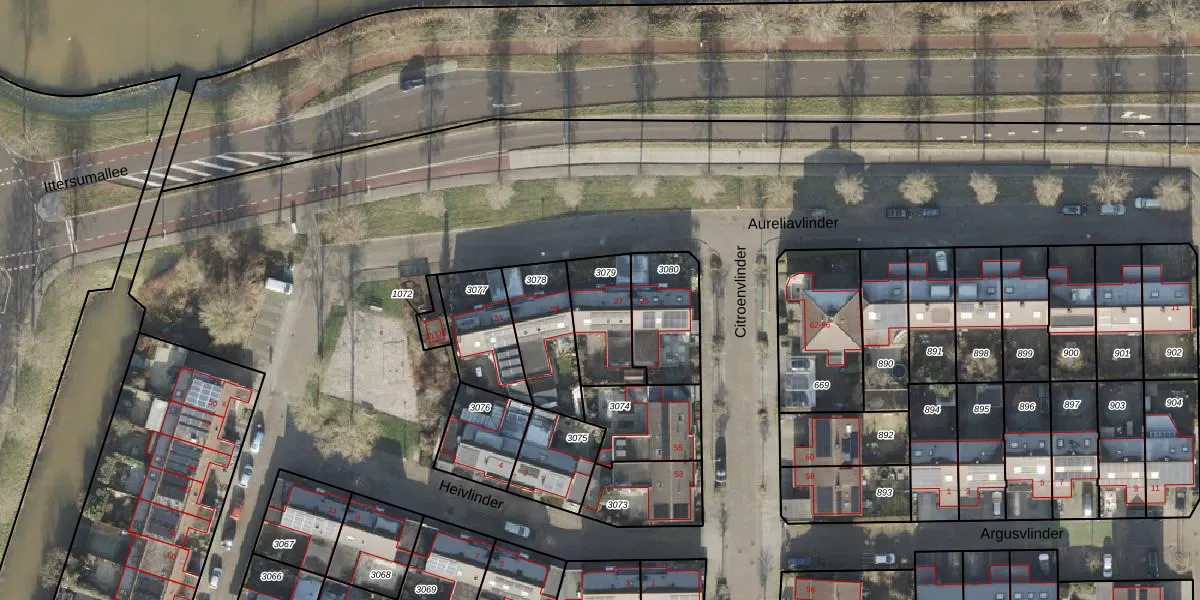 Gebruik de zoekbalk of klik op een perceel voor informatie over de adressen binnen dit perceel.