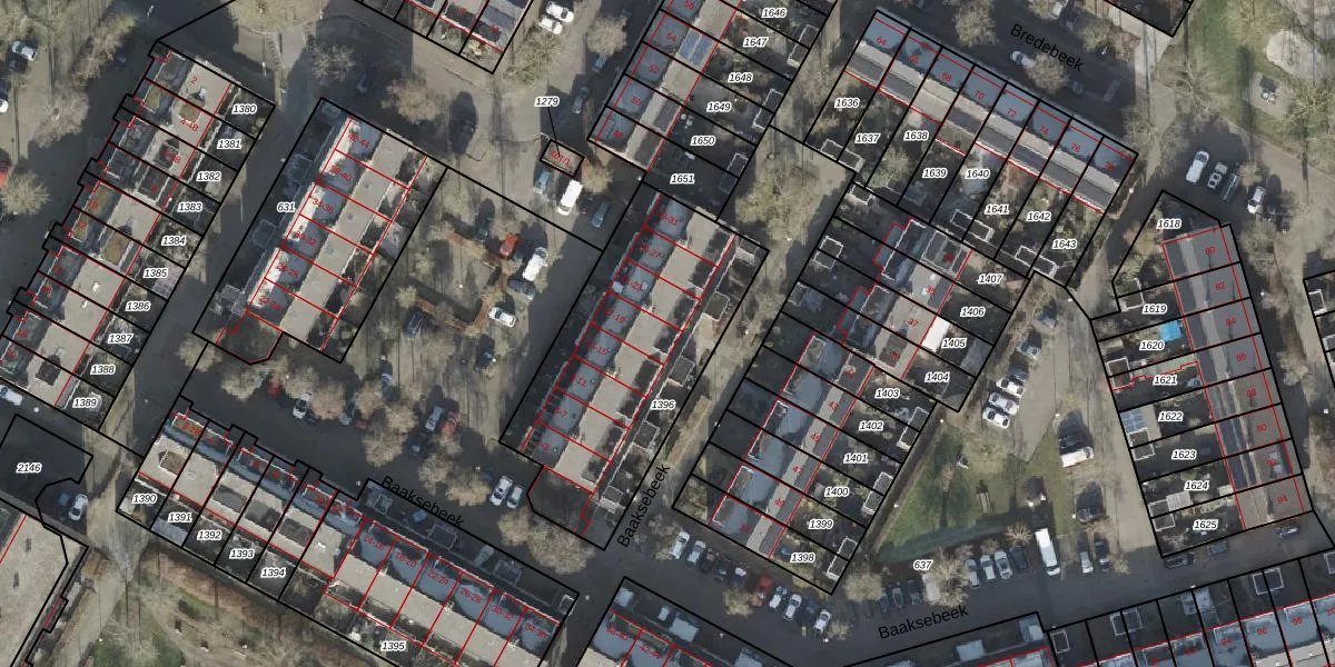 Het perceel waarop Baaksebeek 19 staat heeft een oppervlakte van 1058 m². Dit is een zeer groot perceel. De perceeloppervlakte wordt geregistreerd door het Kadaster. Gedetailleerde informatie over de maten van dit perceel kunt u vinden in het rapport Kadastrale kaart met maatvoering van Baaksebeek 19.