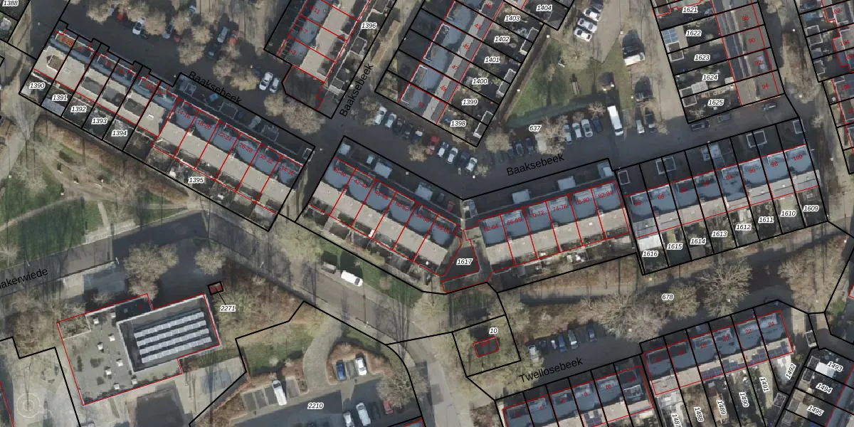 Het perceel waarop Baaksebeek 56 staat heeft een oppervlakte van 1749 m². Dit is een zeer groot perceel. De perceeloppervlakte wordt geregistreerd door het Kadaster. Gedetailleerde informatie over de maten van dit perceel kunt u vinden in het rapport Kadastrale kaart met maatvoering van Baaksebeek 56.