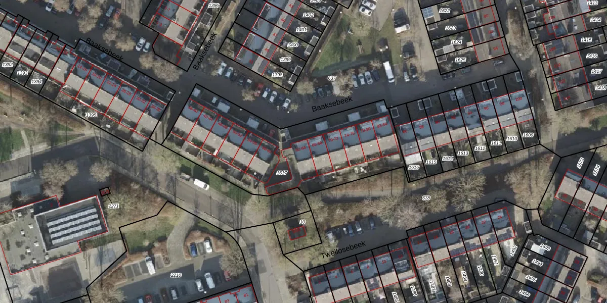 Het perceel waarop Baaksebeek 62 staat heeft een oppervlakte van 1749 m². Dit is een zeer groot perceel. De perceeloppervlakte wordt geregistreerd door het Kadaster. Gedetailleerde informatie over de maten van dit perceel kunt u vinden in het rapport Kadastrale kaart met maatvoering van Baaksebeek 62.