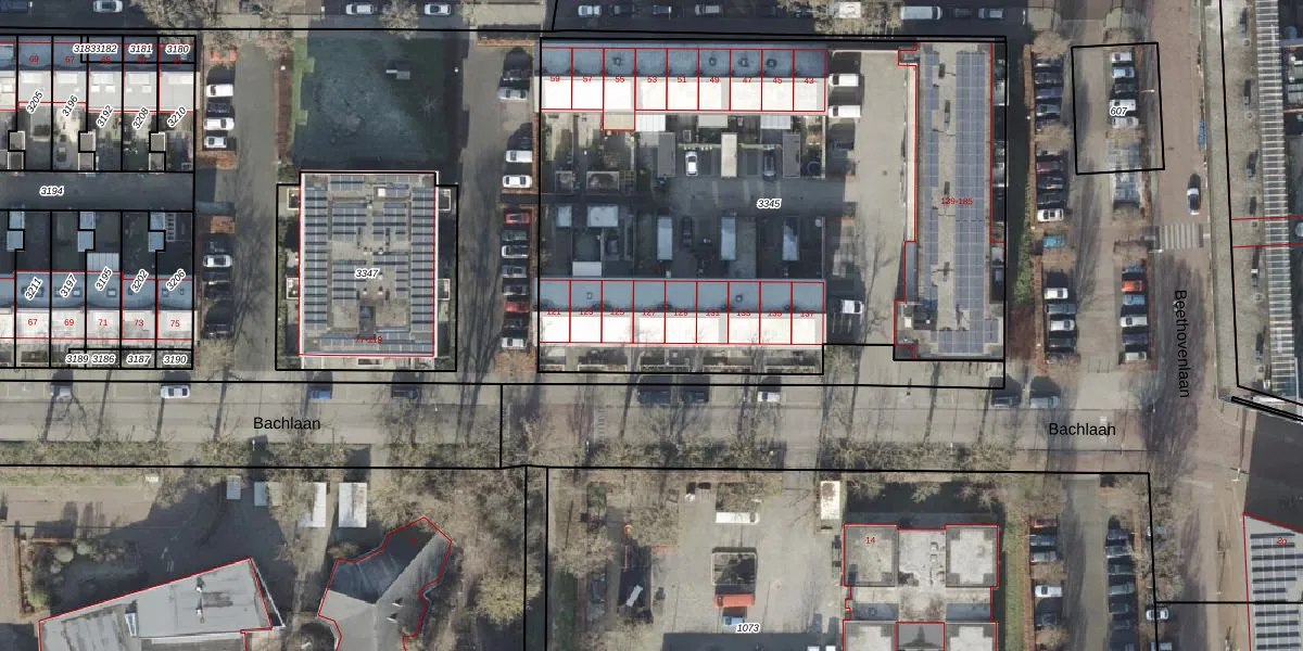 Het perceel waarop Bachlaan 127 staat heeft een oppervlakte van 3578 m². Dit is een zeer groot perceel. De perceeloppervlakte wordt geregistreerd door het Kadaster. Gedetailleerde informatie over de maten van dit perceel kunt u vinden in het rapport Kadastrale kaart met maatvoering van Bachlaan 127.
