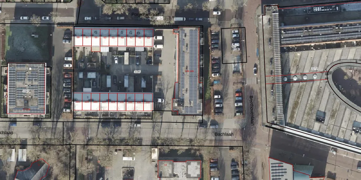 Het perceel waarop Bachlaan 175 staat heeft een oppervlakte van 3578 m². Dit is een zeer groot perceel. De perceeloppervlakte wordt geregistreerd door het Kadaster. Gedetailleerde informatie over de maten van dit perceel kunt u vinden in het rapport Kadastrale kaart met maatvoering van Bachlaan 175.