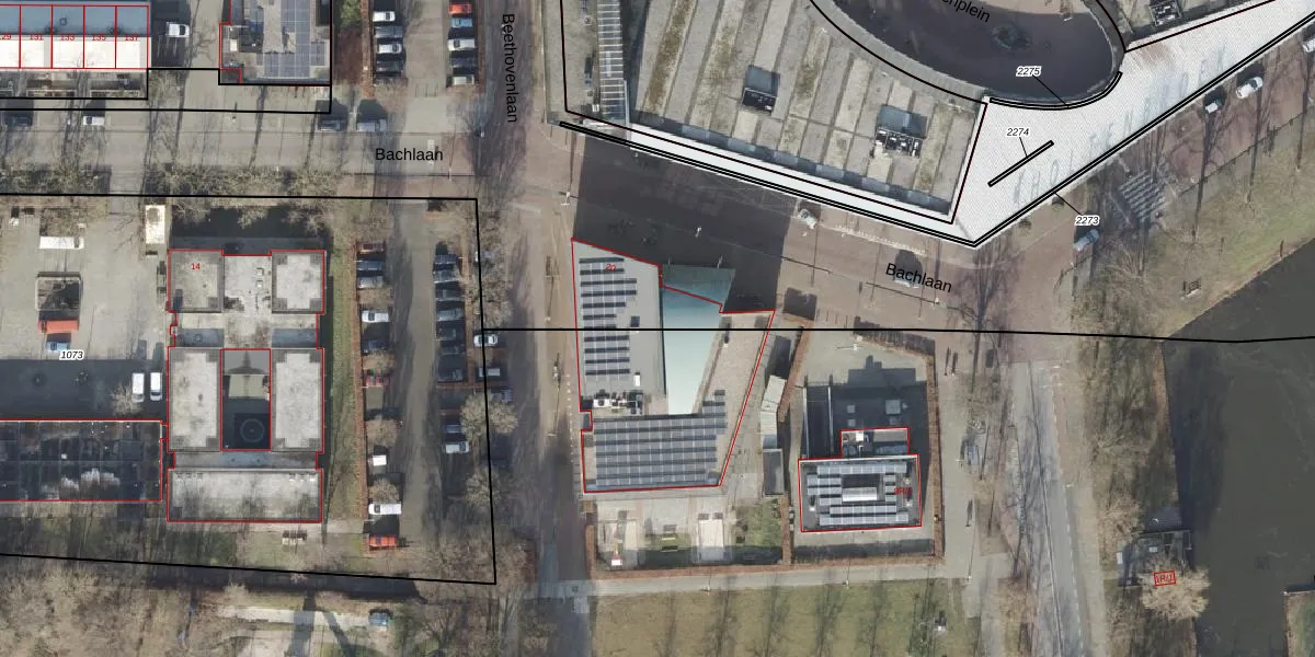 Het perceel waarop Bachlaan 20 staat heeft een oppervlakte van 10,2 ha. Dit is een zeer groot perceel. De perceeloppervlakte wordt geregistreerd door het Kadaster. Gedetailleerde informatie over de maten van dit perceel kunt u vinden in het rapport Kadastrale kaart met maatvoering van Bachlaan 20.