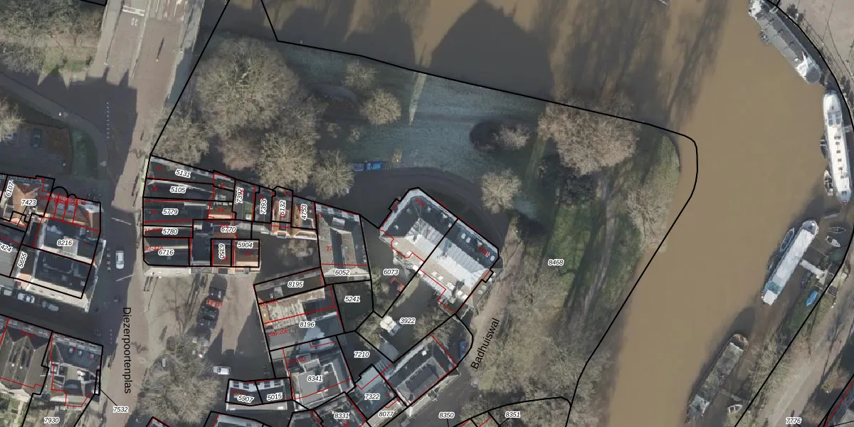 Het perceel waarop Badhuiswal 9 staat heeft een oppervlakte van 342 m². Dit is een groot perceel. De perceeloppervlakte wordt geregistreerd door het Kadaster. Gedetailleerde informatie over de maten van dit perceel kunt u vinden in het rapport Kadastrale kaart met maatvoering van Badhuiswal 9.