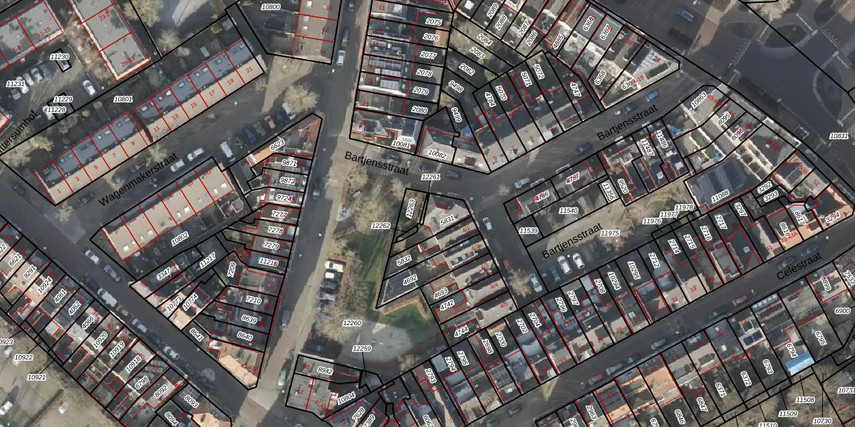 Het perceel waarop Bartjensstraat 4-C staat heeft een oppervlakte van 100 m². Dit is een middelgroot perceel. De perceeloppervlakte wordt geregistreerd door het Kadaster. Gedetailleerde informatie over de maten van dit perceel kunt u vinden in het rapport Kadastrale kaart met maatvoering van Bartjensstraat 4-C.