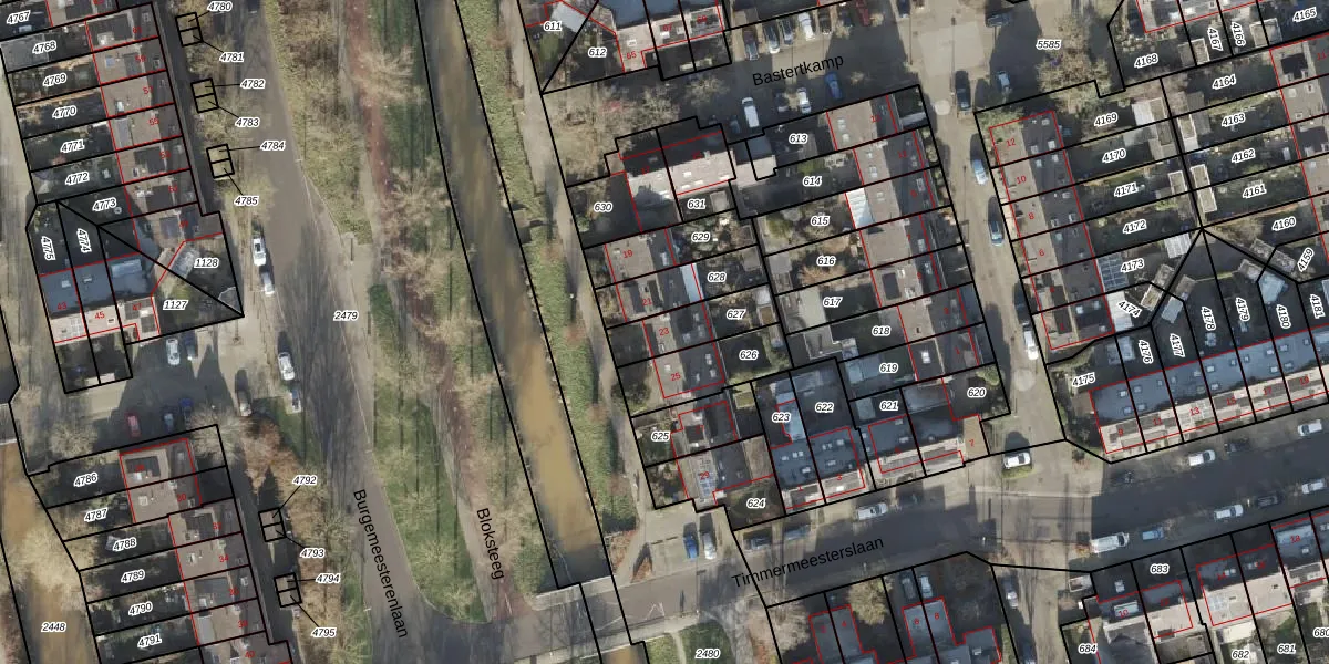 Gebruik de zoekbalk of klik op een perceel voor informatie over de adressen binnen dit perceel.