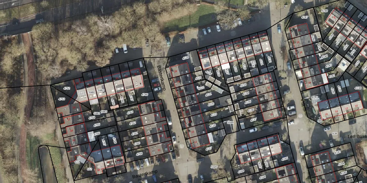 Het perceel waarop Bastertkamp 24 staat heeft een oppervlakte van 122 m². Dit is een middelgroot perceel. De perceeloppervlakte wordt geregistreerd door het Kadaster. Gedetailleerde informatie over de maten van dit perceel kunt u vinden in het rapport Kadastrale kaart met maatvoering van Bastertkamp 24.