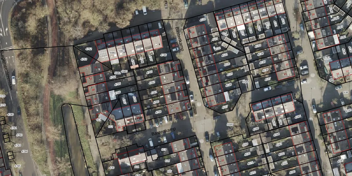 Het perceel waarop Bastertkamp 35 staat heeft een oppervlakte van 154 m². Dit is een middelgroot perceel. De perceeloppervlakte wordt geregistreerd door het Kadaster. Gedetailleerde informatie over de maten van dit perceel kunt u vinden in het rapport Kadastrale kaart met maatvoering van Bastertkamp 35.