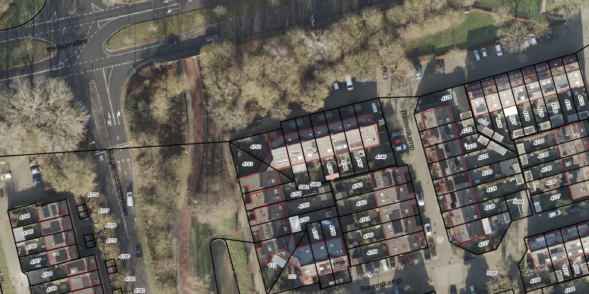Het perceel waarop Bastertkamp 51 staat heeft een oppervlakte van 119 m². Dit is een middelgroot perceel. De perceeloppervlakte wordt geregistreerd door het Kadaster. Gedetailleerde informatie over de maten van dit perceel kunt u vinden in het rapport Kadastrale kaart met maatvoering van Bastertkamp 51.
