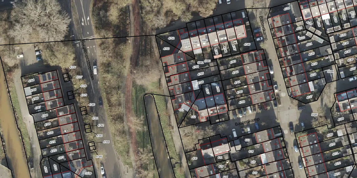 Gebruik de zoekbalk of klik op een perceel voor informatie over de adressen binnen dit perceel.