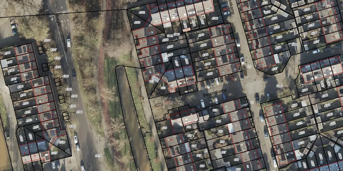 Het perceel waarop Bastertkamp 65 staat heeft een oppervlakte van 170 m². Dit is een middelgroot perceel. De perceeloppervlakte wordt geregistreerd door het Kadaster. Gedetailleerde informatie over de maten van dit perceel kunt u vinden in het rapport Kadastrale kaart met maatvoering van Bastertkamp 65.