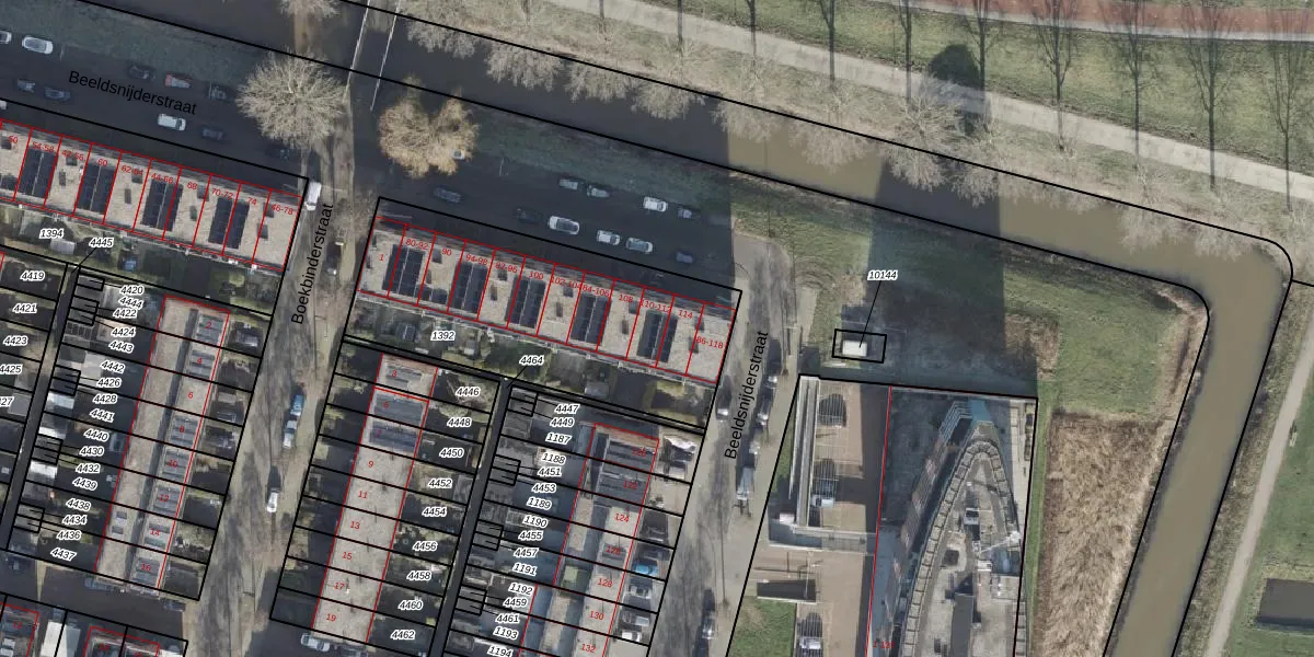 Het perceel waarop Beeldsnijderstraat 110 staat heeft een oppervlakte van 1232 m². Dit is een zeer groot perceel. De perceeloppervlakte wordt geregistreerd door het Kadaster. Gedetailleerde informatie over de maten van dit perceel kunt u vinden in het rapport Kadastrale kaart met maatvoering van Beeldsnijderstraat 110.