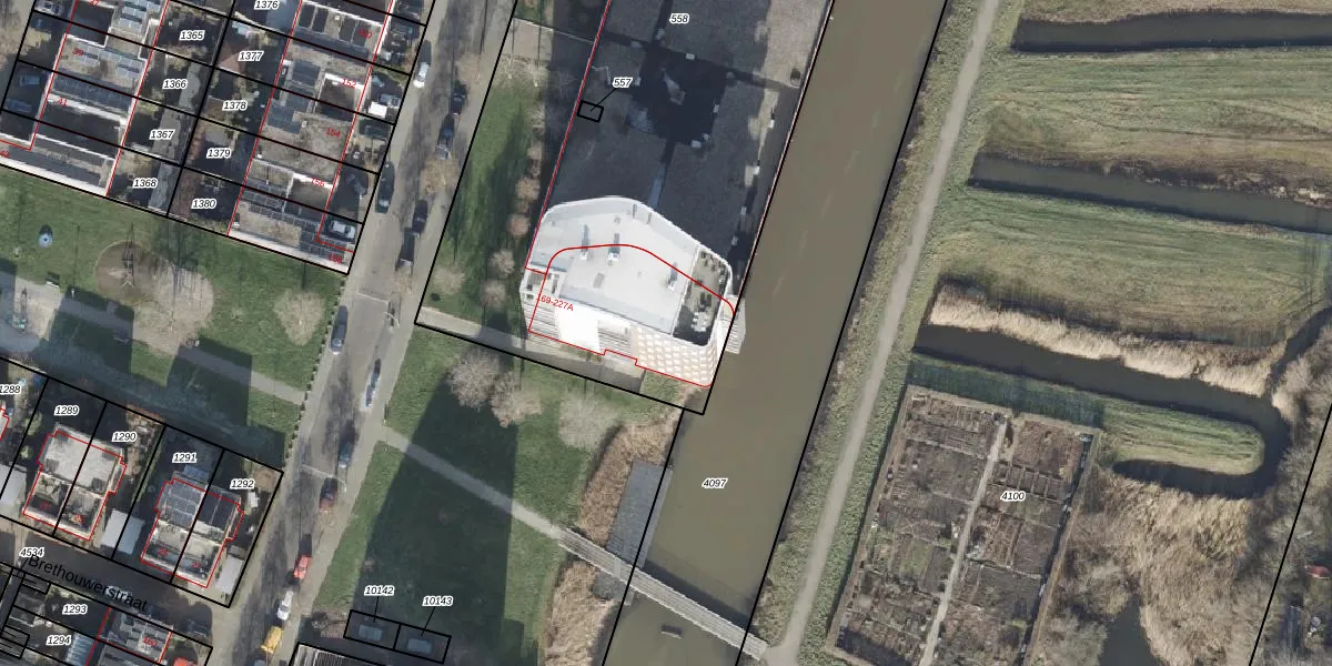 Het perceel waarop Beeldsnijderstraat 183 staat heeft een oppervlakte van 4033 m². Dit is een zeer groot perceel. De perceeloppervlakte wordt geregistreerd door het Kadaster. Gedetailleerde informatie over de maten van dit perceel kunt u vinden in het rapport Kadastrale kaart met maatvoering van Beeldsnijderstraat 183.