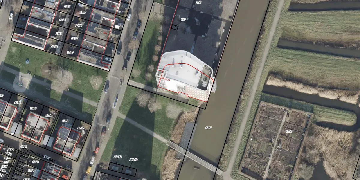 Het perceel waarop Beeldsnijderstraat 219 staat heeft een oppervlakte van 4033 m². Dit is een zeer groot perceel. De perceeloppervlakte wordt geregistreerd door het Kadaster. Gedetailleerde informatie over de maten van dit perceel kunt u vinden in het rapport Kadastrale kaart met maatvoering van Beeldsnijderstraat 219.